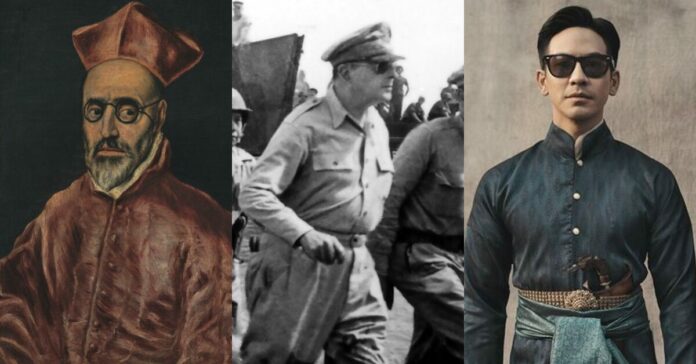 (ซ้าย) Fernando Niño de Guevara นักบวชในคริสต์ศาสนา สวมแว่นตา ภาพวาดราว ค.ศ. 1600, (กลาง) นายพลดักลาส แมกอาเธอร์ สวมใส่แว่นกันแดด, (ขวา) นักแสดงจาก บุพเพสันนิวาส 2 สวมใส่แว่นตา (ภาพจาก เฟซบุ๊ก : GDH)