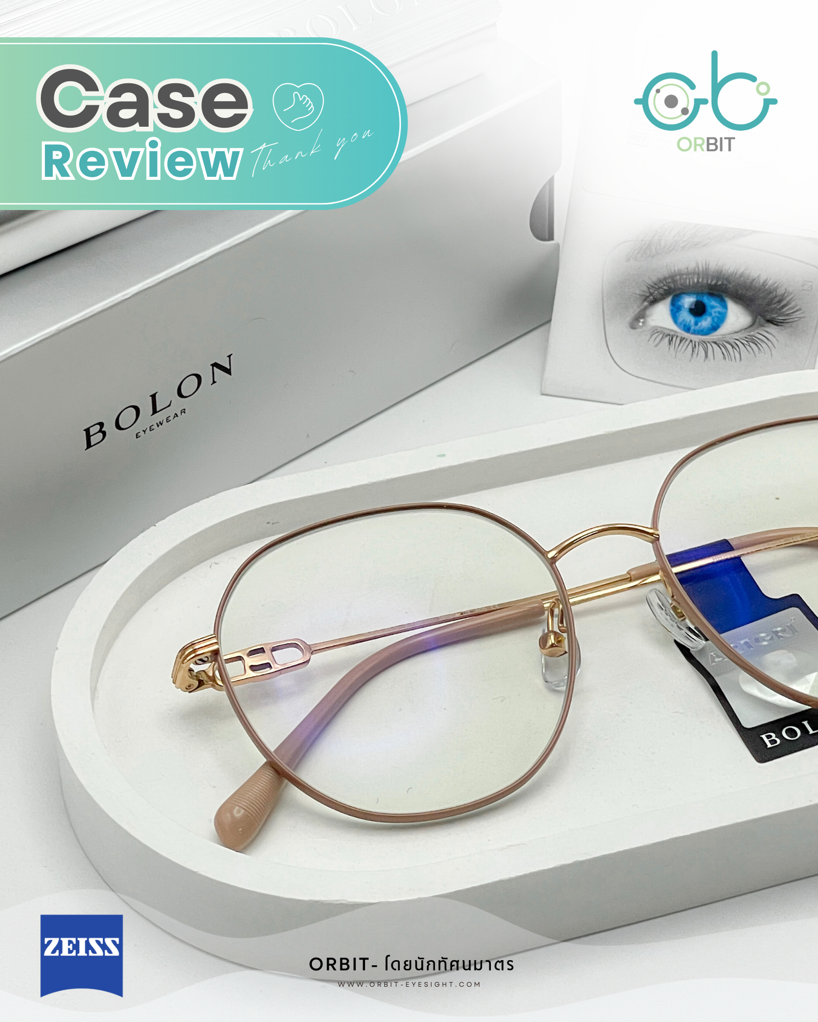 ส่วนตัวกรอบคุณลูกค้าชอบกรอบที่มีน้ำหนักเบาชอบกรอบทรง Oval ที่มีขนาดใหญ่หน่อย และชอบกรอบสี Pink gold ทางร้านจึงแนะนำ Bolon BH7006 B39 ให้กับคุณลูกค้าซึ่งตัวกรอบมีสีPink goldตามที่คุณลูกค้าอยากได้แถมตัวกรอบมีน้ำหนักเบาสบายใส่แล้วไม่หนักหน้า