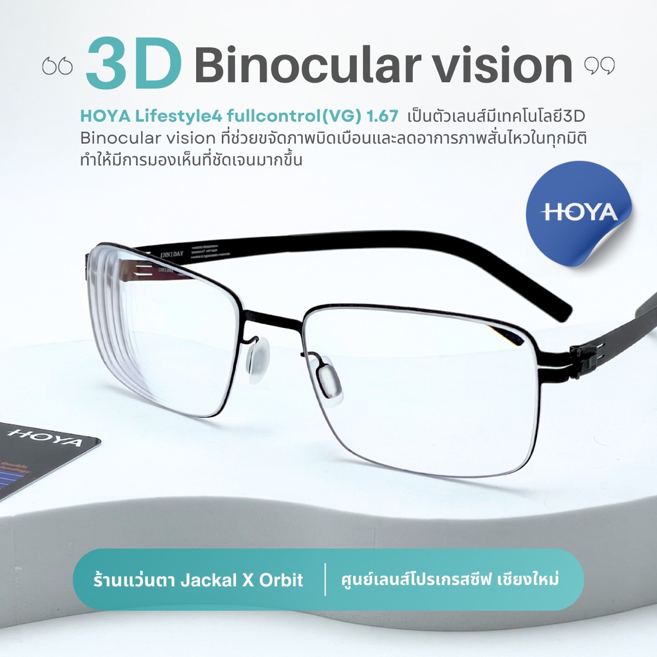 เป็นตัวเลนส์มีเทคโนโลยี3D Binocular vision ที่ช่วยขจัดภาพบิดเบือนและลดอาการภาพสั่นไหวในทุกมิติทำให้มีการมองเห็นที่ชัดเจนมากขึ้น และเทคโนโลยี Hoya Identifier เป็นเลนส์เฉพาะบุคคล 100% ที่ออกแบบมาให้ตรงกับความต้องการของผู้ใช้งานมากยิ่งขึ้น ส่วนตัวกรอบคุณลูกค้าชอบกรอบที่บางมีน้ำหนักเบาสบาย
