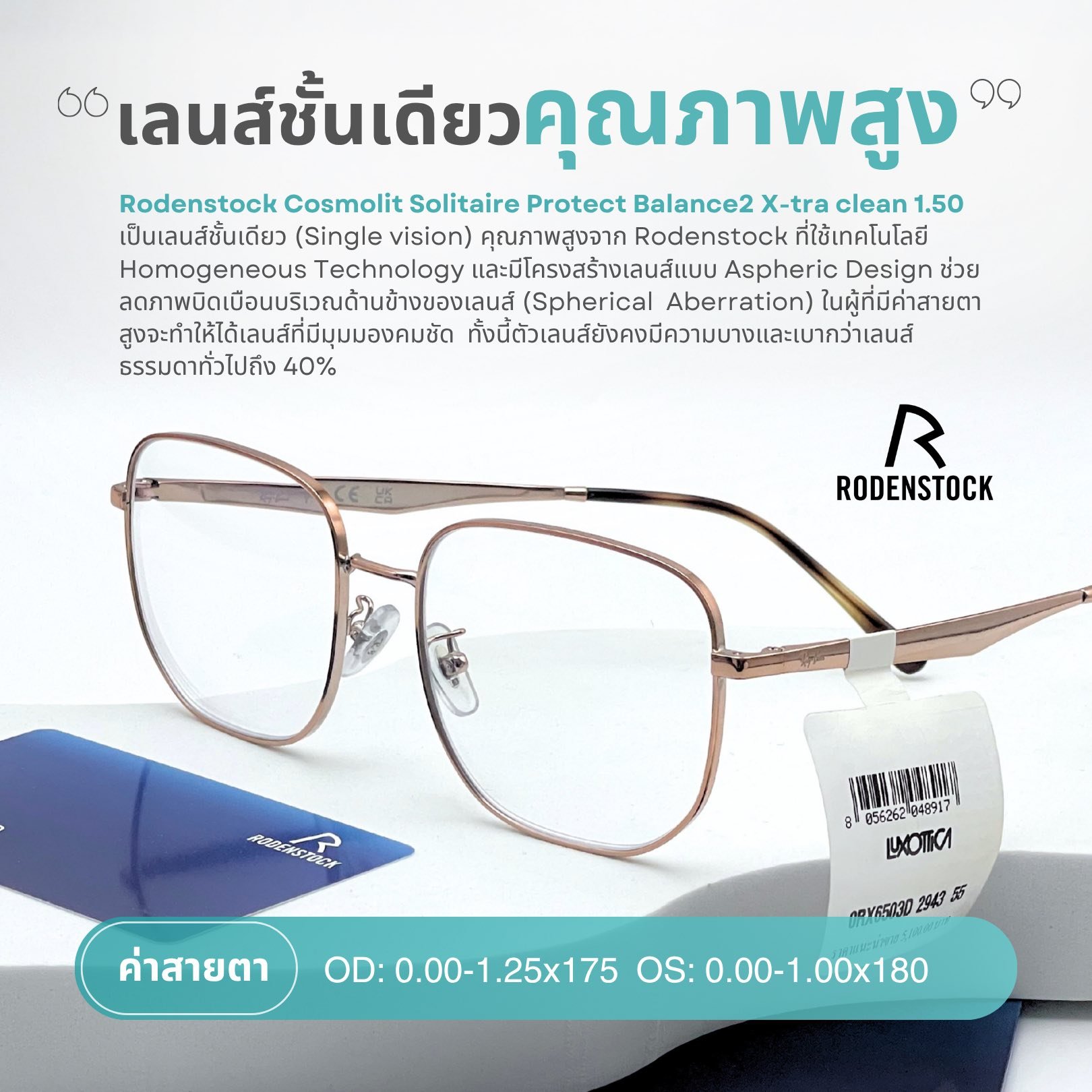 - Solitaire Protect Balance2 คือสารเคลือบเลนส์ (Coating) ระดับPremiumจาก Rodenstock ประเทศเยอรมนี ที่ออกแบบมาเพื่อปกป้องดวงตาในยุคดิจิทัลโดยเฉพาะ โดยโดดเด่นเรื่องการช่วยกรองแสงสีฟ้าที่มาจากอุปกรณ์อิเล็กทรอนิกส์ต่างๆ เช่น คอมพิวเตอร์ สมาร์ทโฟน เป็นต้น เพื่อเป็นการปกป้องดวงตาของคุณจากแสงสีฟ้า ช่วยให้คุณรู้สึกผ่อนคลาย นอกจากนี้ยังมีชั้นเคลือบผิวที่มาพร้อมคุณสมบัติรอบด้านไม่ว่าจะเป็นการเคลือบเพื่อป้องกันรอยขีดข่วน ป้องกันการเกิดไฟฟ้าสถิต ป้องกันการเกาะของฝุ่น และป้องกันรังสีที่เป็นอันตรายต่อดวงตา ซึ่งคุณสมบัติเหล่านี้จะช่วยในการปกป้องเลนส์ให้มีความทนทาน ง่ายต่อการดูแลรักษาความสะอาด ทั้งยังมีคุณสมบัติช่วยลดแสงสะท้อน จึงทำให้ผู้ใช้งานสัมผัสได้ถึงความใส ใส่สบายตา